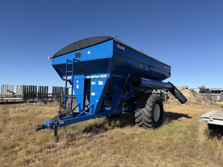 2016 Brandt 1020XR grain cart, barely used and in excellent condition, featuring a massive 1000-bushel tank capacity and a robust 20” corner unload auger delivering an impressive 500 bu/min unload speed. This high-performance cart is designed for efficiency, allowing you to move grain quickly and reliably during harvest. Perfect for farmers looking to upgrade their operation with top-tier equipment at a fraction of the cost of new. Don’t miss out on this like-new, field-ready machine!