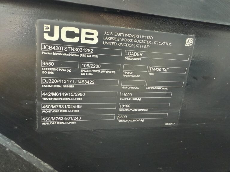 A pristine 2022 JCB TM420 telescopic wheel loader – a clean, well-maintained unit ready to tackle your toughest jobs right away. This versatile machine combines the power of a heavy-duty wheel loader with the extended reach of a telehandler, making it ideal for agriculture, construction, material handling, and more. Powered by a reliable JCB EcoMAX 4.8L turbocharged diesel engine delivering 145 hp (108 kW) and 560 Nm (413 ft-lb) of torque, it offers exceptional performance and fuel efficiency. Key specs include a maximum lift capacity of 4,100 kg (9,039 lbs), maximum lift height of 5.45 m (17 ft 10 in), forward reach up to 3 m (9 ft 10 in), bucket capacity of 1.6 m³, and a top travel speed of 40 km/h (25 mph). The articulated design provides superb maneuverability, while features like smooth powershift transmission, excellent all-around visibility, and operator comfort keep productivity high and downtime low. Bucket included in the price – no extra costs for this essential attachment. Low hours, clean condition, and built tough by JCB for long-term reliability.
