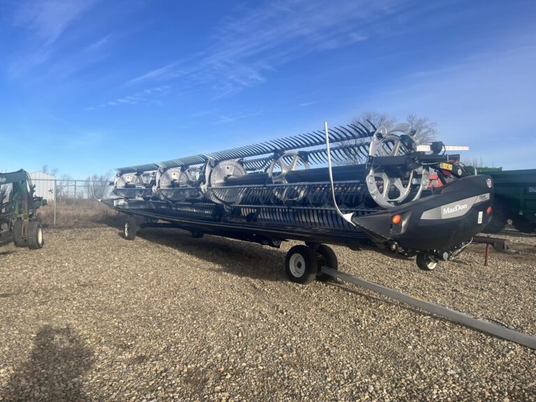 Equipped with rugged construction, double knife drive for clean high-speed cutting with minimal vibration, advanced FeedMax™ crop feeding system, and features like poly skids, hydraulic adjustments, and excellent durability, the FD240 excels in tough conditions while keeping operation simple and productive. Whether you’re harvesting cereals, pulses, or high-volume crops, this low-hour 2024 model offers the perfect blend of innovation, capacity, and proven MacDon quality to boost your harvest efficiency and bottom line. Ready to elevate your operation—don’t miss this exceptional header!