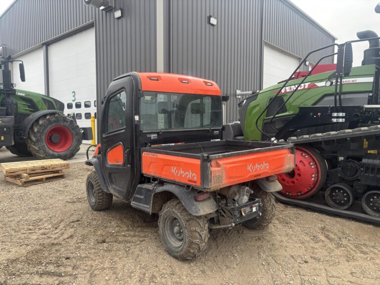 Excellent condition 2023 with low hours, loaded with kubota diesel engine, hydrostatic trans, 4×4 with diff lock and seals cab with heat and a/c. Also has extra light bar and extra work lights. Tires 25×10-12.